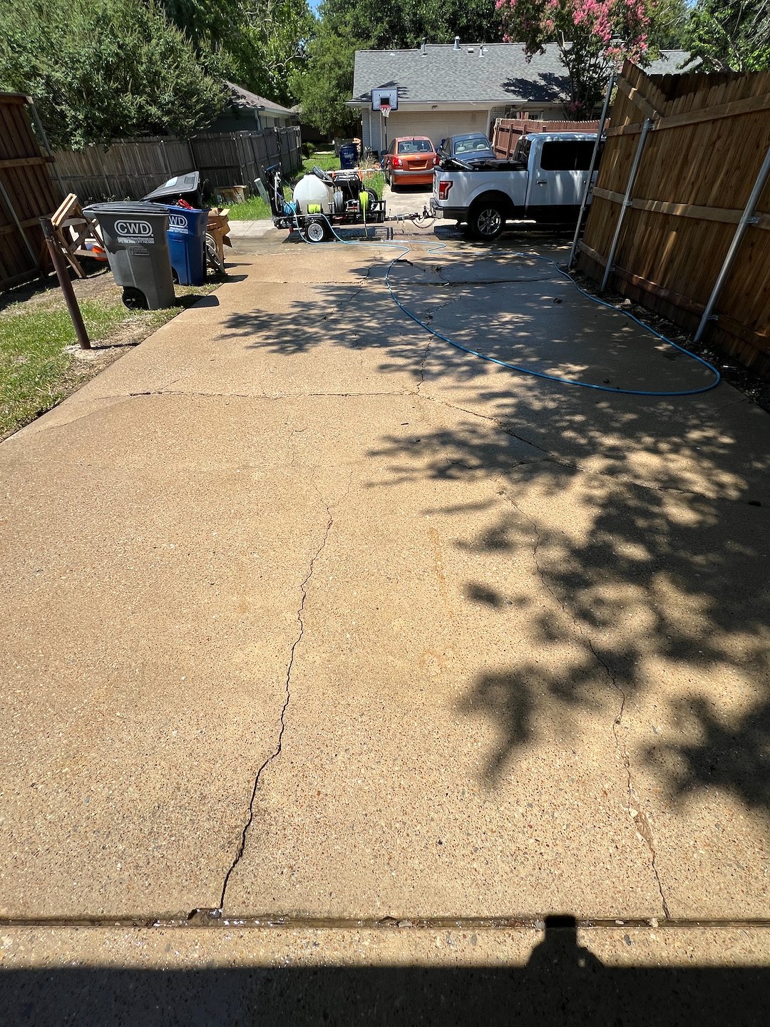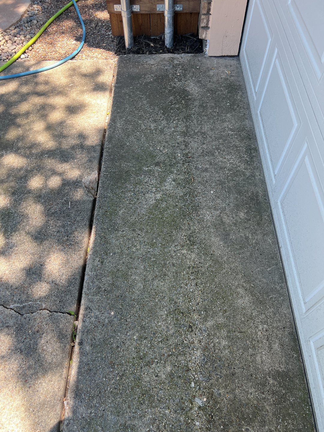 This client included their garage floors in the scope of work. Using professional degreasers and proper dwell times allowed surface pollutants to be lifted and washed away. The process helped brighten the concrete and remove some oil stains, improving the overall appearance of the garage.