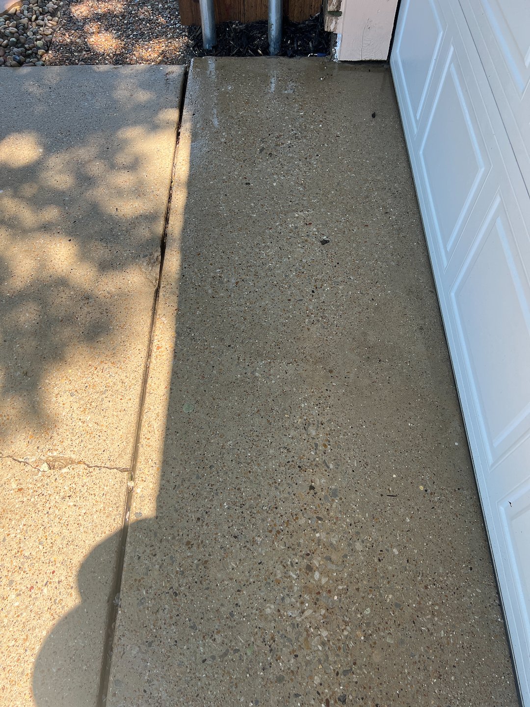The aggregate sidewalk brightened significantly after cleaning, which made the front curb appeal more welcoming and clean. Bright sidewalks make a big difference in first impressions, especially when buyers or agents pull up for a showing or for professional photos.