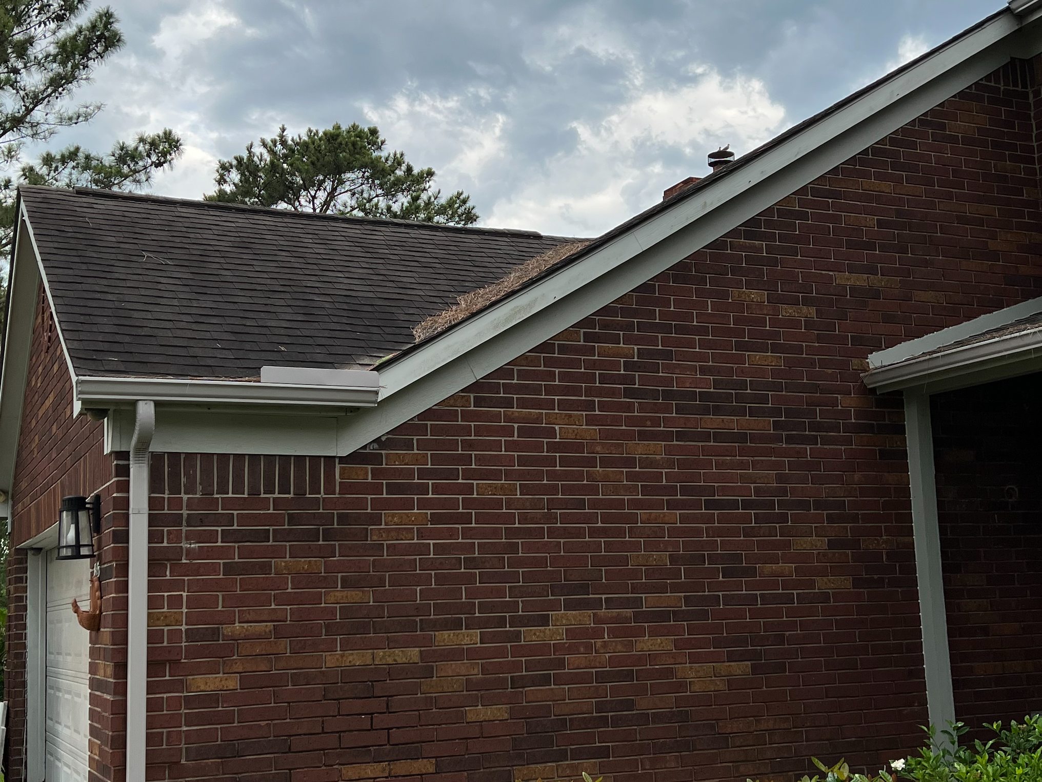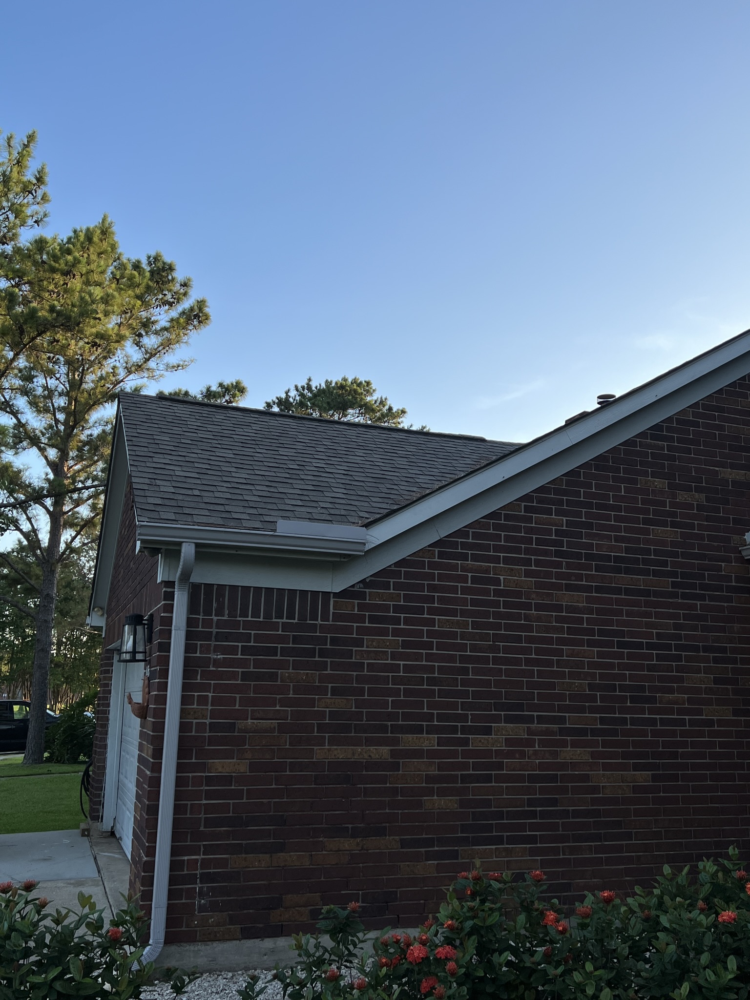 The roof was replaced almost 15 years ago and had years of gloeocapsa magma (roof mold) buildup. We hit this roof with our softwash system that gently applies our detergents to kill off all the organic growth. The roof was completely transformed at a fraction of the cost of a new roof.